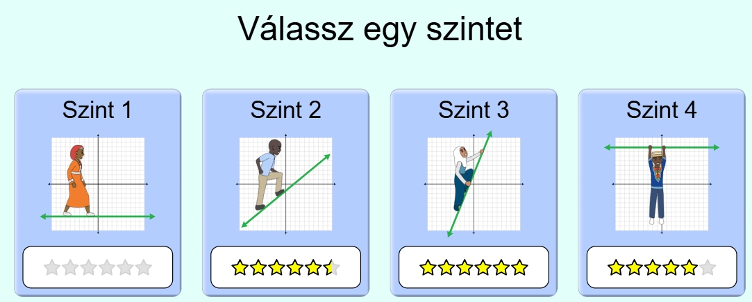 A PHET matematika oldalán gyakorolva kitűnően megértheted a lineáris függvény képletének felépítését, , meredekségét, tengelymetszetét. Hajrá, ne állj meg míg kétszer végíg nem érsz a négy feladatsoron